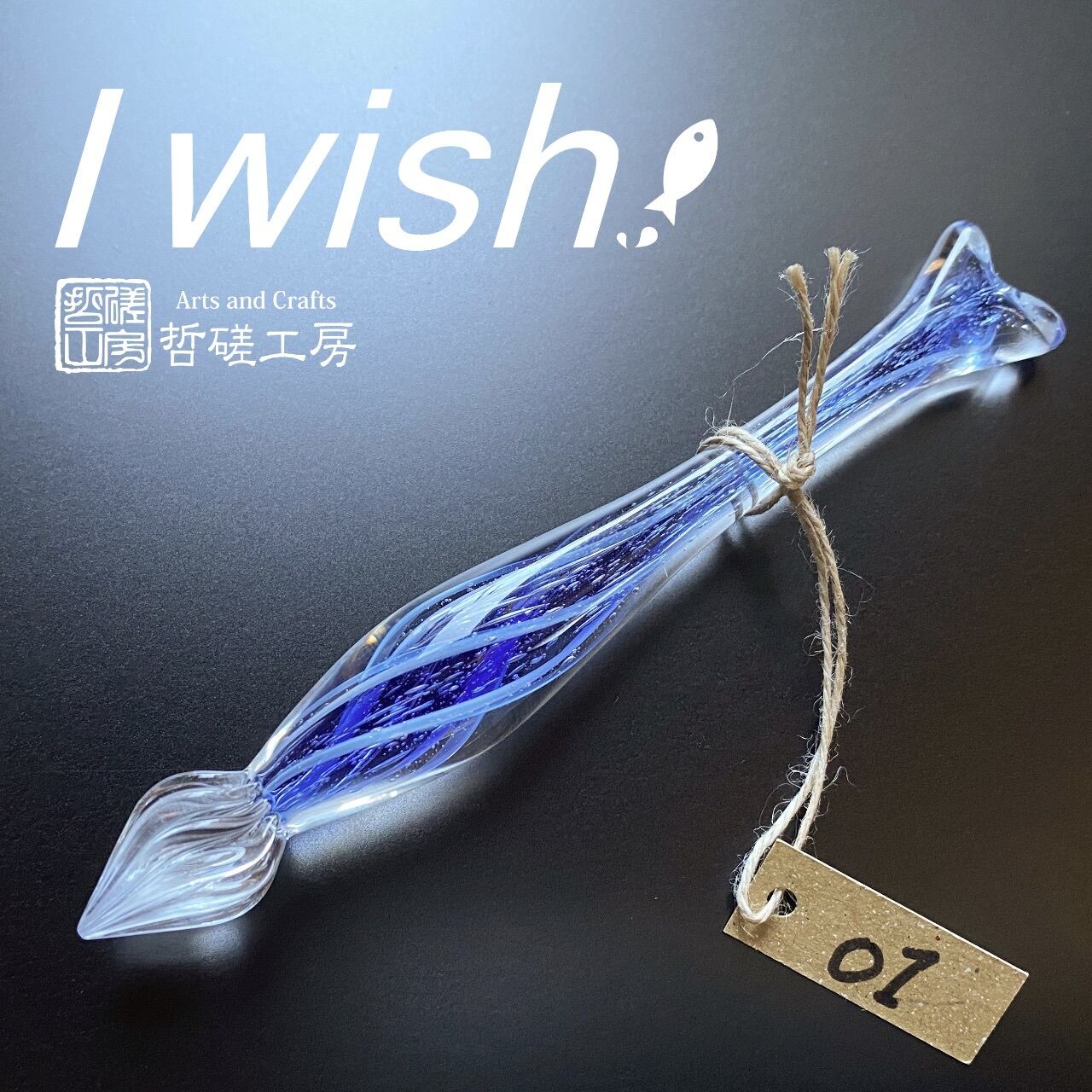 百花繚乱のインクの海を悠々と泳ぐお魚型ガラスペンです。