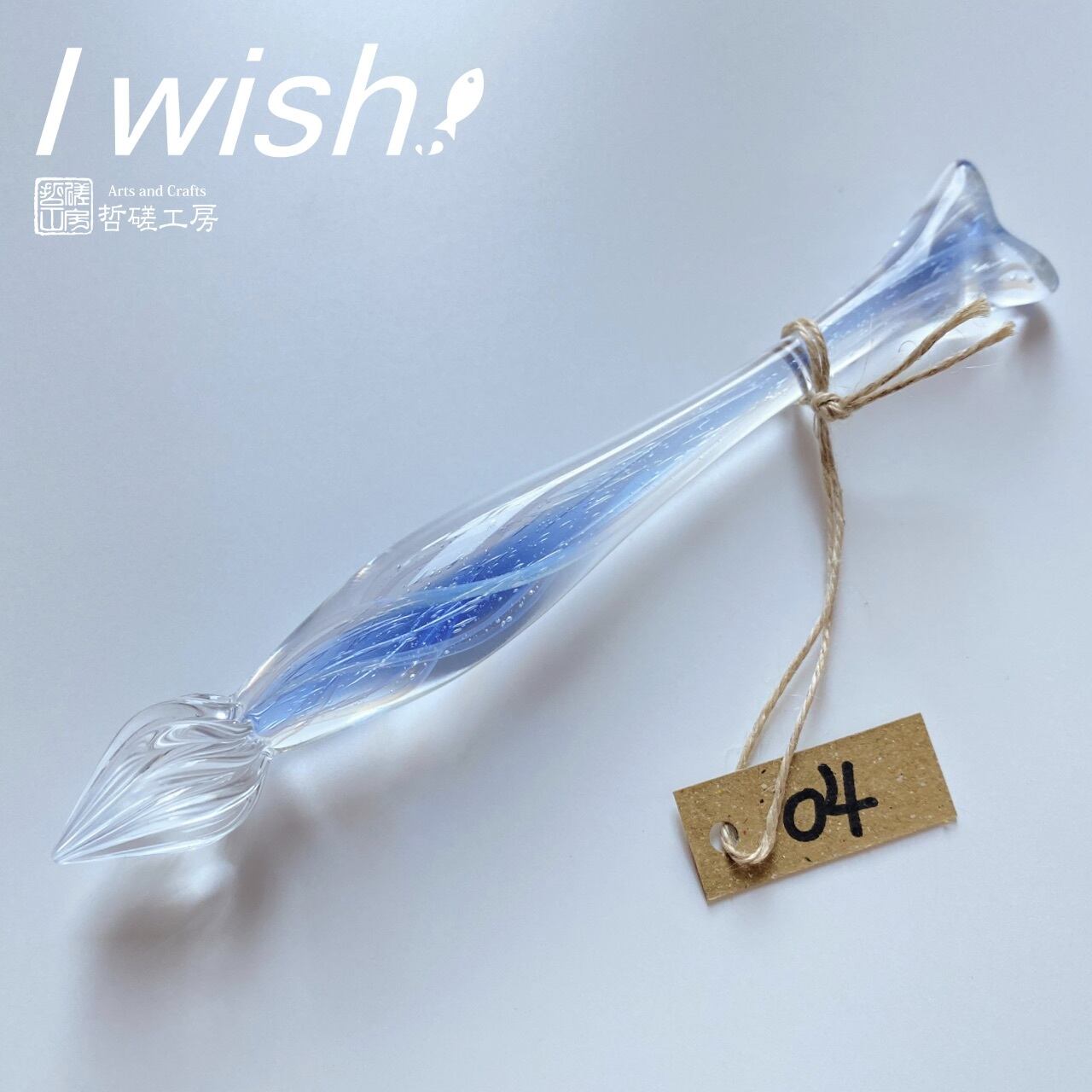 百花繚乱のインクの海を悠々と泳ぐお魚型ガラスペンです。
