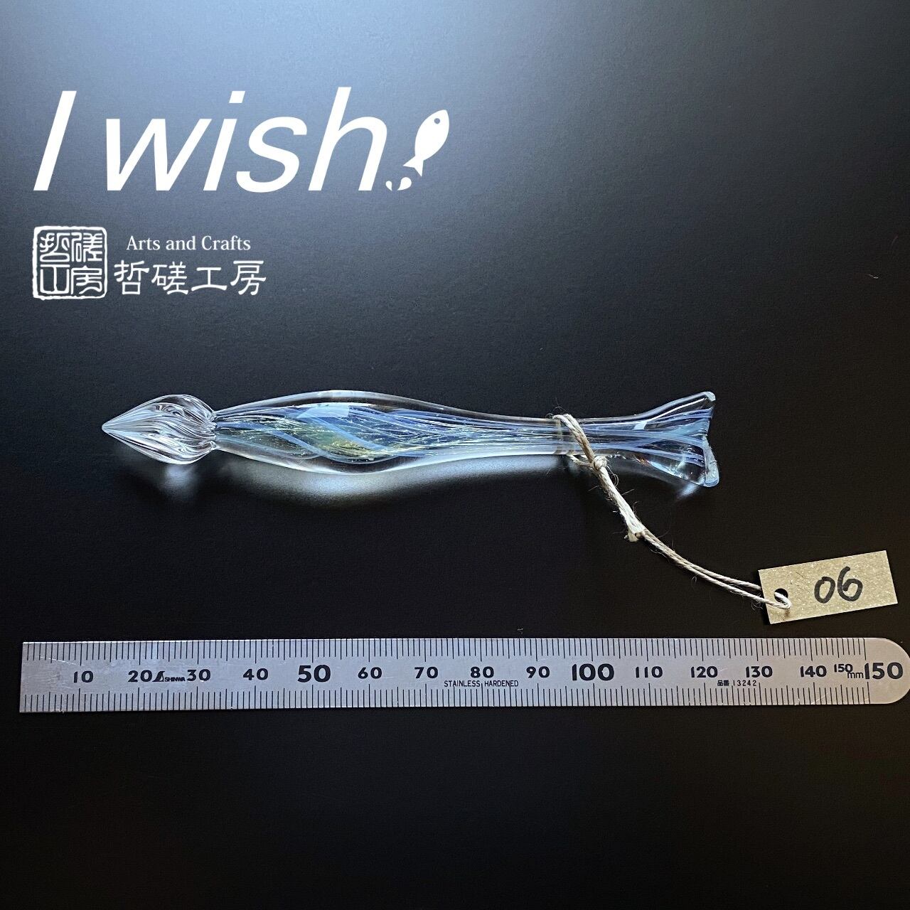 百花繚乱のインクの海を悠々と泳ぐお魚型ガラスペンです。