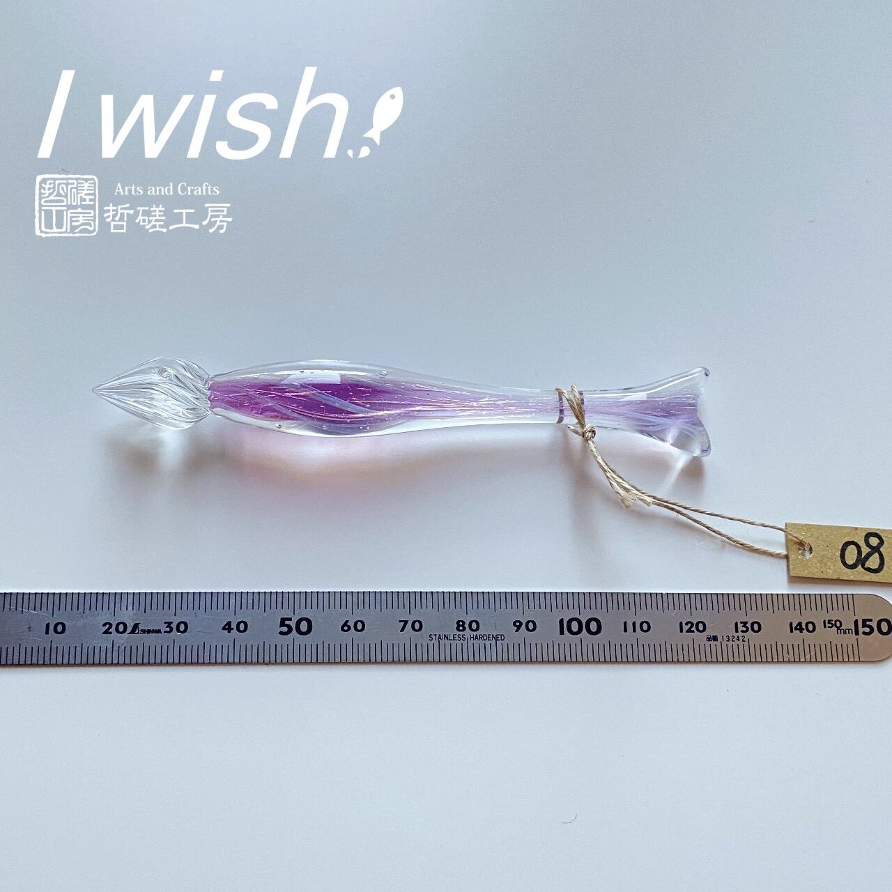 百花繚乱のインクの海を悠々と泳ぐお魚型ガラスペンです。