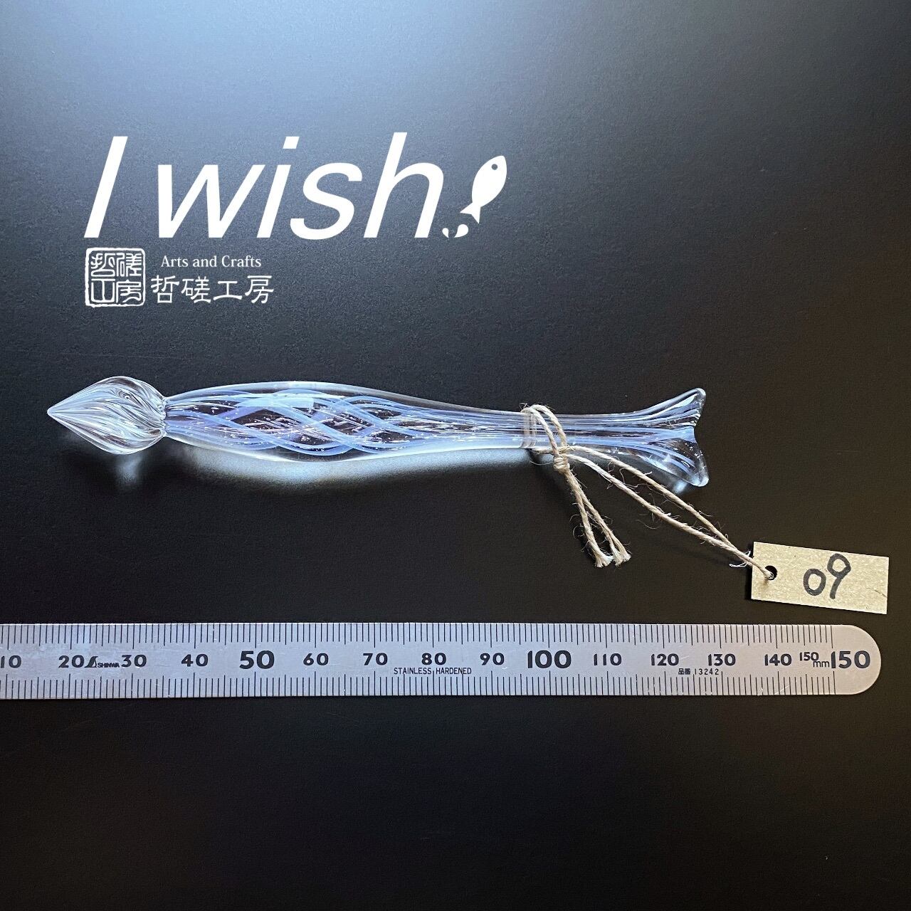 百花繚乱のインクの海を悠々と泳ぐお魚型ガラスペンです。