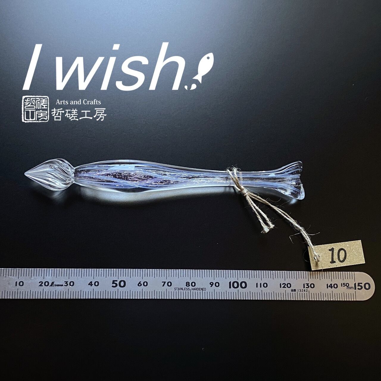 百花繚乱のインクの海を悠々と泳ぐお魚型ガラスペンです。