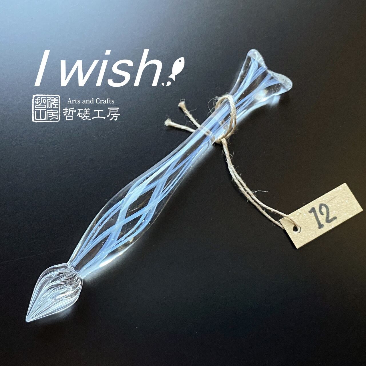 百花繚乱のインクの海を悠々と泳ぐお魚型ガラスペンです。